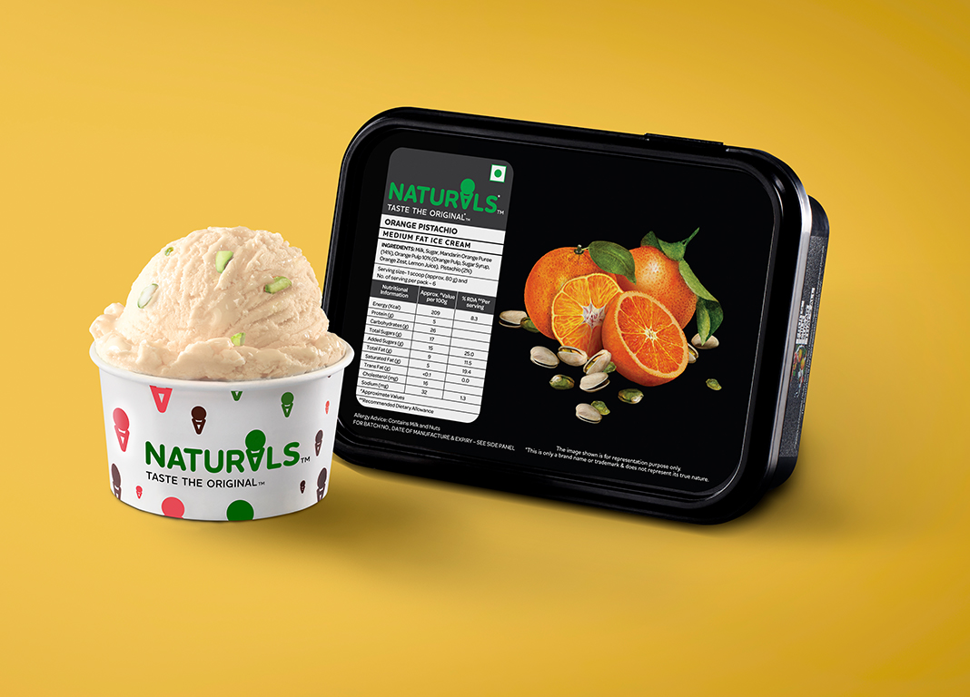 Orange Pistachio is inspired by the nostalgic taste of orange barfi which is loved by all. This flavour also has a Turkish influence, since orange and pista is a combination used for making Turkish delights. Naturals has launched the Orange Pistachio ice cream, which has an international yet desi twist. Pulpy, zesty orange bites compliment the nutty, roasted pistachios in this unique flavour!